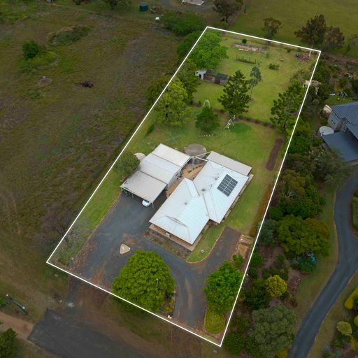 Property Description: The peaceful surrounding of this beautiful home will entice you in every sense of the word. What a fantastic opportunity situated on the edge of town on a 3956m2 block with a bore. This spacious brick home with many features will impress if you want a quiet retreat but is still close to all-town amenities. The town of Pittsworth is situated in the heart of the Darling Downs in a rural community, surrounded by various agricultural industries, including grain, cotton, cattle and dairy farms. It is approximately 40km west of Toowoomba, with a daily bus run that travels to schools and shopping centres. The town is within a 2-3 hour scenic drive to Brisbane, the Sunshine Coast and the Gold Coast. This well-presented home features three large bedrooms with built-in cupboards and an ensuite in the main bedroom with a shower, toilet and handrails for the elderly. There is a library which would be big enough for a fourth bedroom and a study with built-in cupboards and shelving. The kitchen has plenty of room, ample bench and cupboard space, a wall oven, an electric cooktop with rangehood, and a brand-new dishwasher. The dining living area has a reverse-cycle air conditioner and a gas heater for extra comfort. The size of the large laundry is imposing, with plenty of space and built-in cupboards. The main bathroom has a separate shower and bathtub, and large vanity. The property has two covered outdoor entertainment areas with pavers. A two-bay colorbond-powered shed with a carport at the front would easily fit four cars. The backyard is beautifully landscaped with the added convenience of a bore and your sewerage system. There is a large rainwater tank in addition to solar panels.