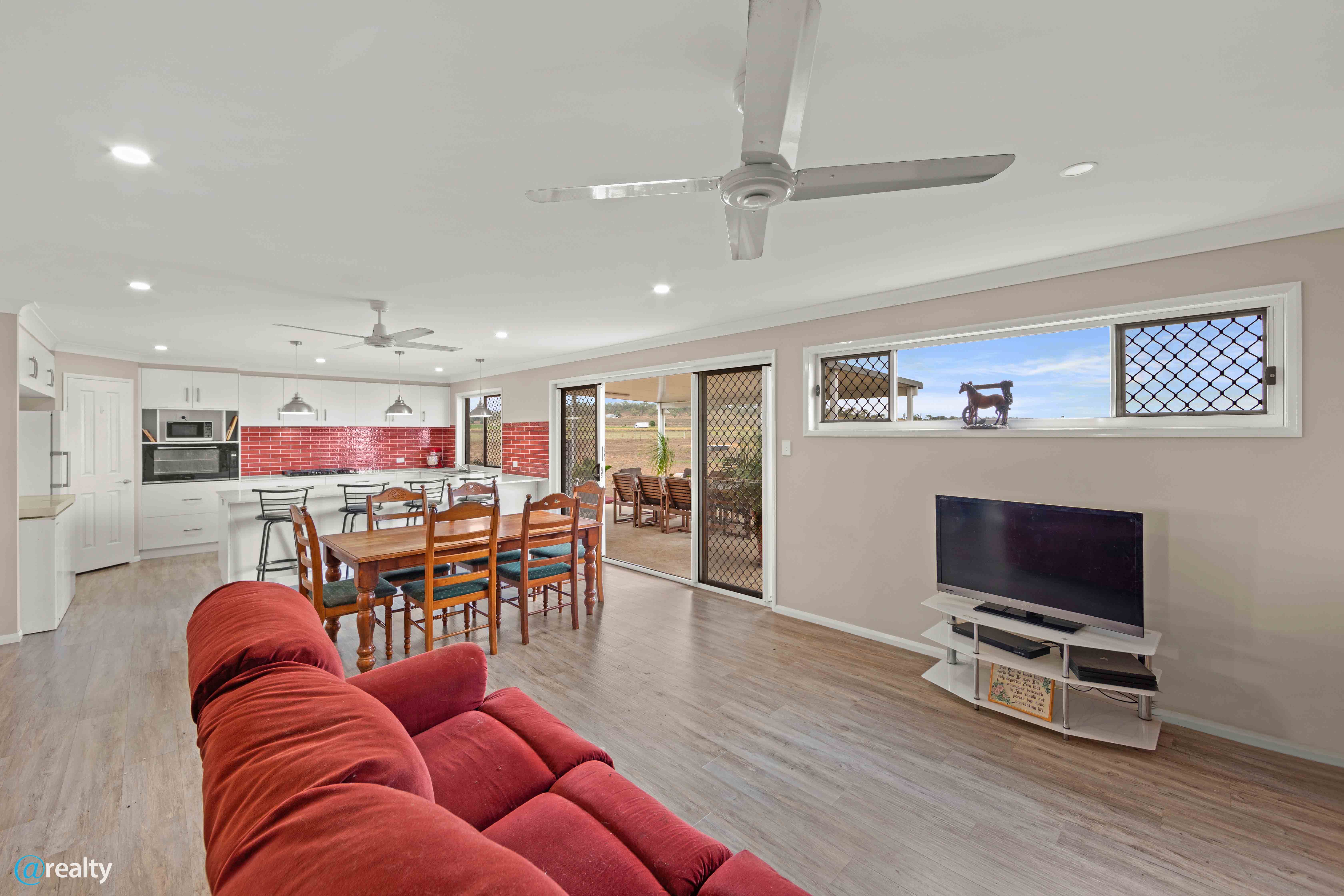 Designed to take full advantage of its idyllic location, this beautiful 2021 built brick family home offers a level of privacy only acreage can afford. It is rare to find a 4 bedroom nearly new brick home on acreage so close to town. You will certainly be impressed with the stunning country kitchen which features plenty of benchtop space, cupboards, large oven, gas cooktop and a dishwasher. This kitchen has been built for the cooking enthusiast. There are four very generous bedrooms with built in wardrobes, mirrors and ceiling fans. The main bedroom also features a walk in robe and ensuite. The spacious bathroom has a seperate shower and bathtub that you will not be dissapointed with. There is an open dining and living area off the kitchen with a reverse cycle air conditioner for those hot summer days and cooler winter nights with a second living/lounge area situated at the front of the house. The home has a large covered outdoor entertainment area that is perfect for hosting family and friends. The block is fully fenced and features a two bay lock up colorbond shed. There is no power currently connected to the shed but conduit has been laid in preparation for this. In addition the property also has several eco-friendly features to help reduce your environmental footprint, including 3 x 5000g water tanks and a 16.5kw solar system with 44 panels. This unique property is perfect for those who want to get away from it all and enjoy the charm of rural life but still be close to town. It offers endless lifestyle and hobby farm opportunities or would be perfect for the equestrian enthusiast seeking room for horses.